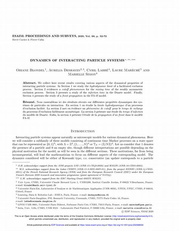 Dynamics Of Interacting Particle Systems